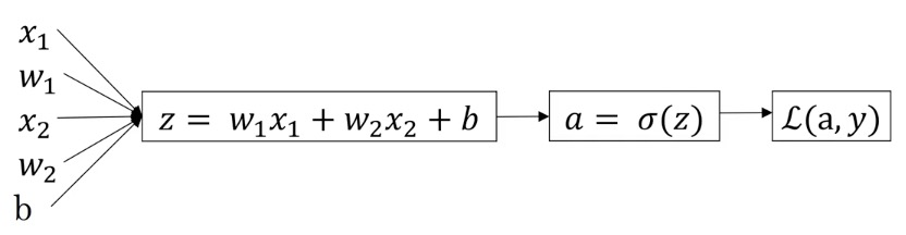 Code:z = np.dot(w.T, X) + bdz = A - Ycost = -1 / m * np.sum(Y * np.log(A) + (1 - Y) * np.log(1 - A))db = 1 / m * np.sum(dZ)dw = 1 / m * X * dZ.T